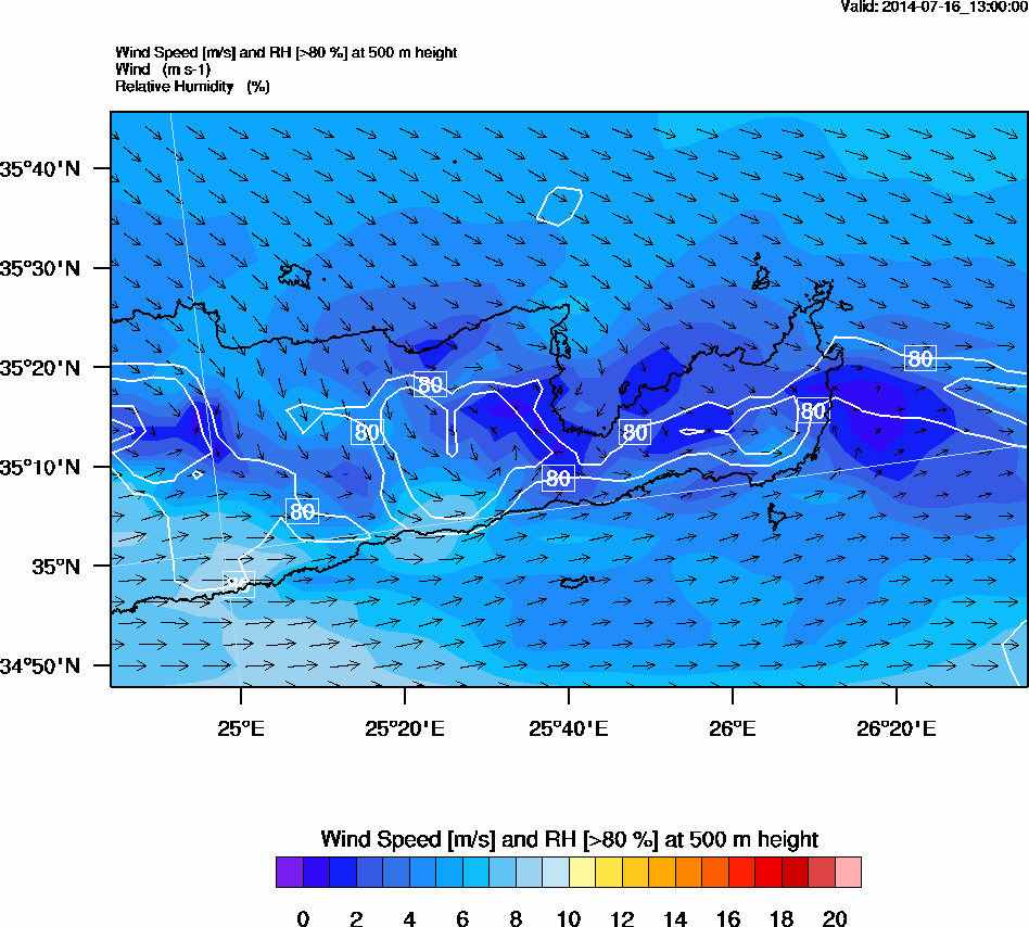 Graph 2: arw052.png - Wind Speed [m/s] and RH [>80%] at 500 m height