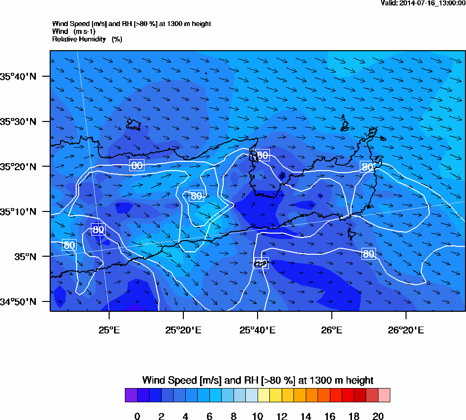 Graph 4: arw054.png - Wind Speed [m/s] and RH [>80%] at 1300 m height