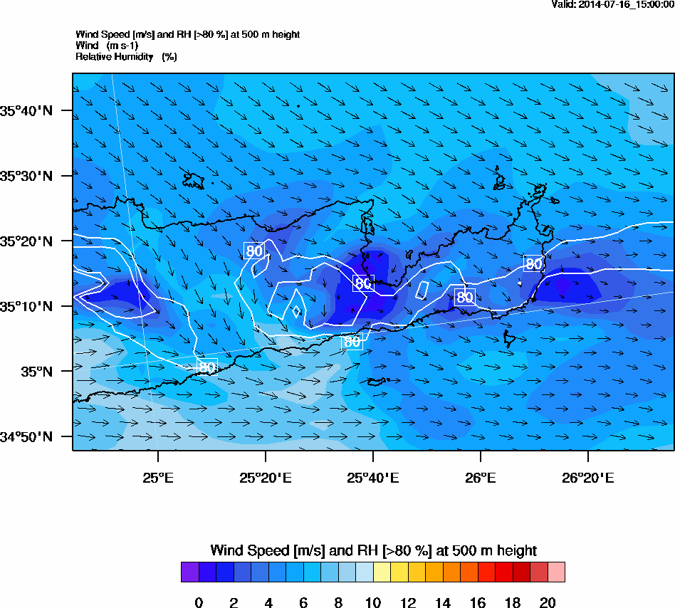 Graph 2: arw062.png - Wind Speed [m/s] and RH [>80%] at 500 m height