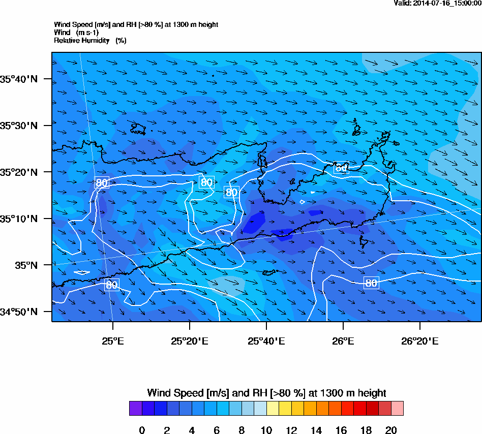 Graph 4: arw064.png - Wind Speed [m/s] and RH [>80%] at 1300 m height