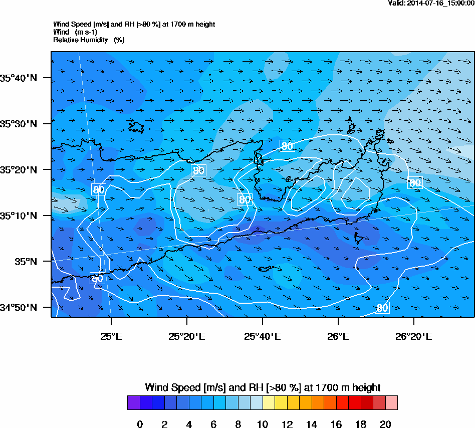 Graph 5: arw065.png - Wind Speed [m/s] and RH [>80%] at 1700 m height