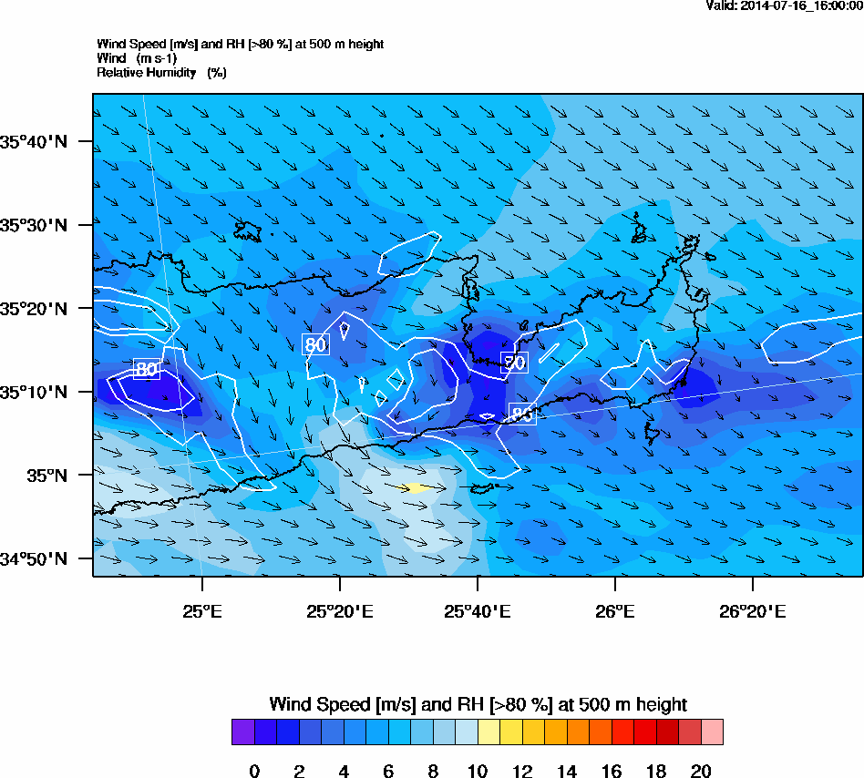 Graph 2: arw067.png - Wind Speed [m/s] and RH [>80%] at 500 m height