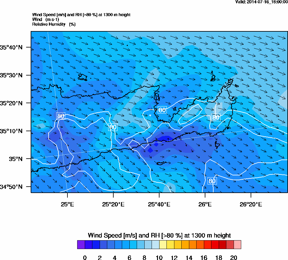 Graph 4: arw069.png - Wind Speed [m/s] and RH [>80%] at 1300 m height