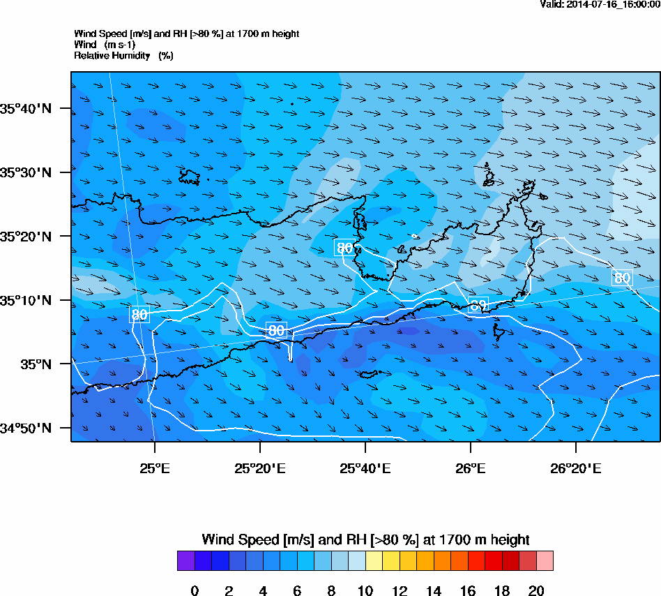 Graph 5: arw070.png - Wind Speed [m/s] and RH [>80%] at 1700 m height