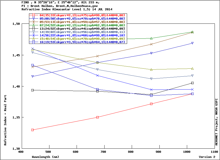 Graph 1: Aerosol volume size distribution -Level 1.5