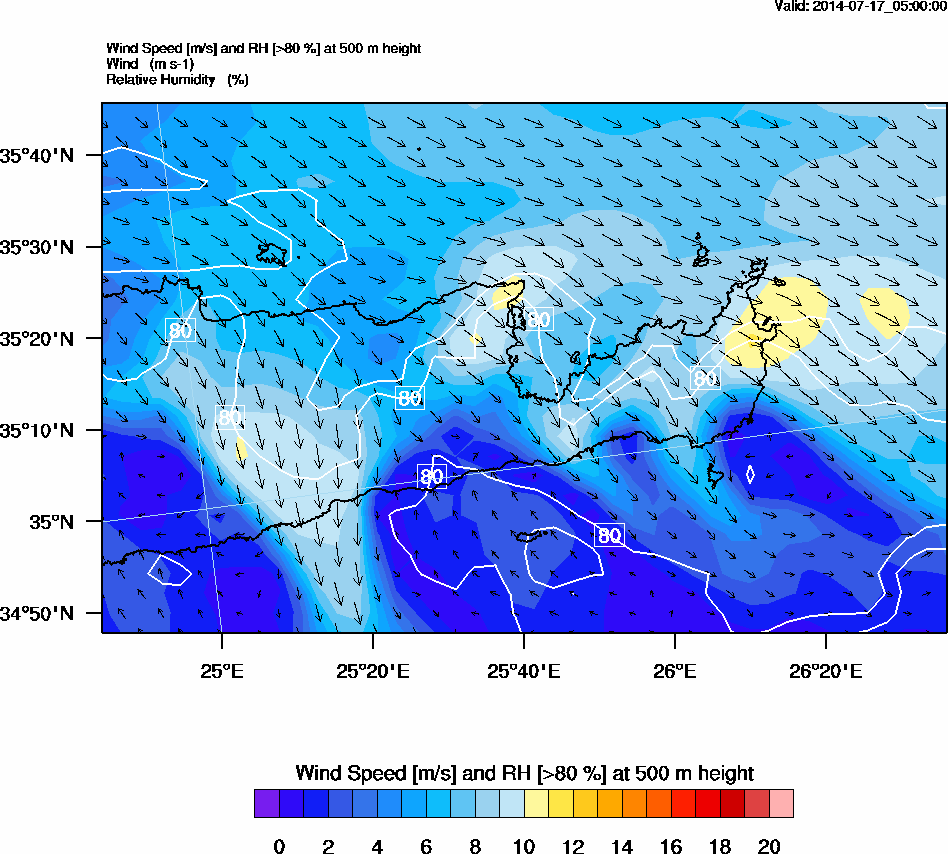 Graph 2: arw012.png - Wind Speed [m/s] and RH [>80%] at 500 m height