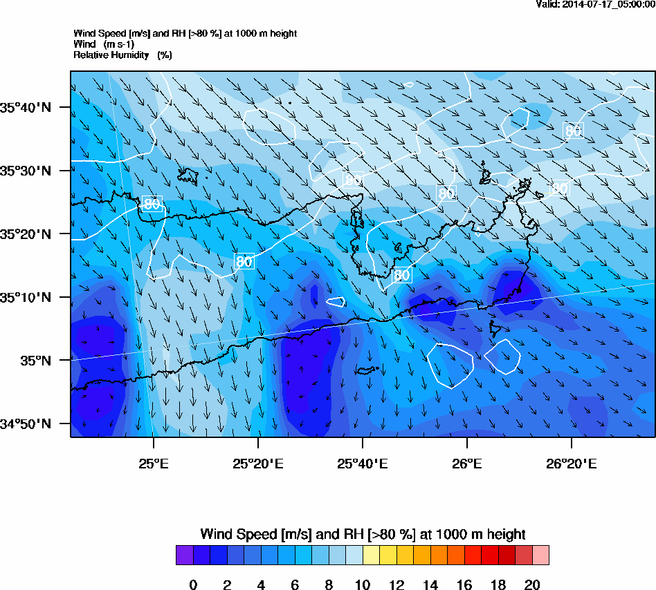 Graph 3: arw013.png - Wind Speed [m/s] and RH [>80%] at 1000 m height