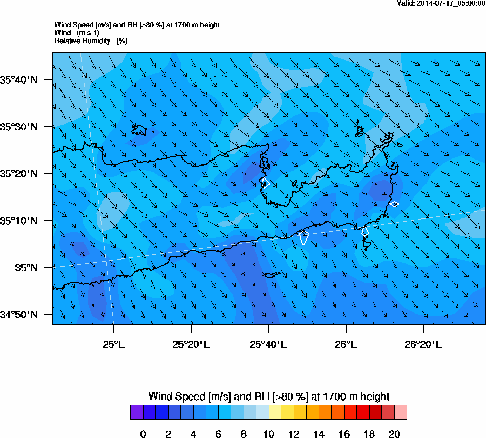Graph 5: arw015.png - Wind Speed [m/s] and RH [>80%] at 1700 m height