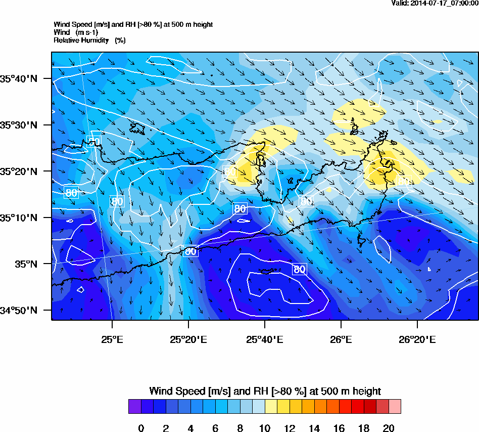 Graph 2: arw022.png - Wind Speed [m/s] and RH [>80%] at 500 m height