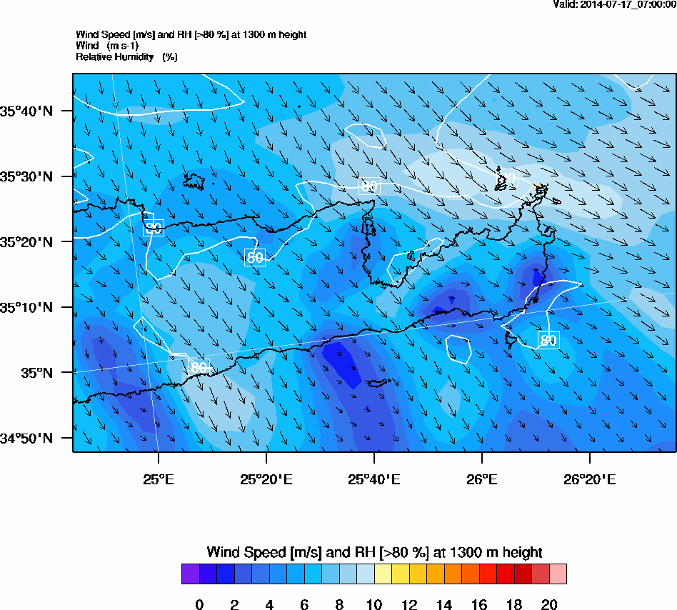 Graph 5: arw025.png - Wind Speed [m/s] and RH [>80%] at 1700 m height