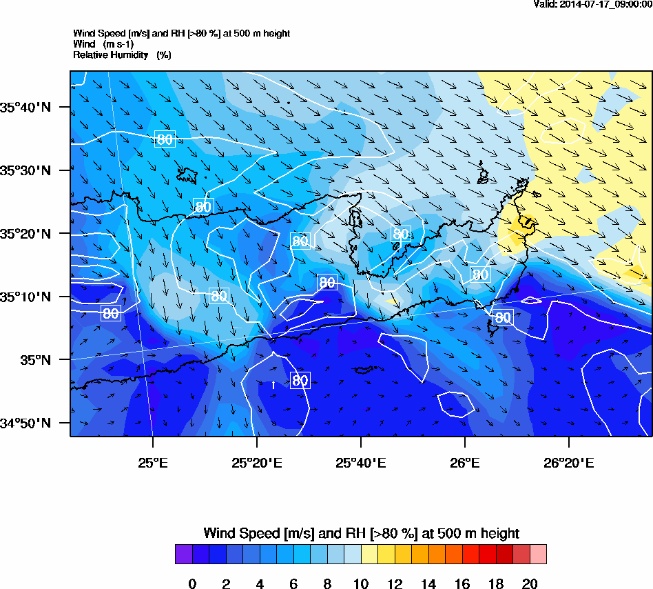 Graph 2: arw032.png - Wind Speed [m/s] and RH [>80%] at 500 m height