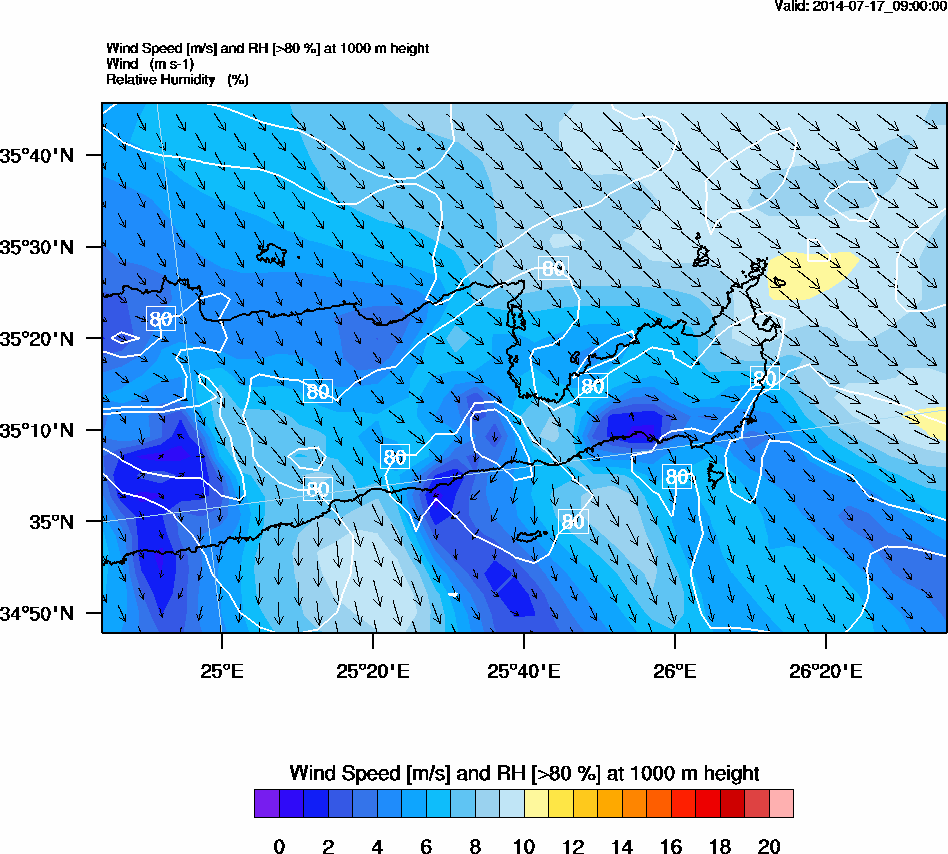 Graph 3: arw033.png - Wind Speed [m/s] and RH [>80%] at 1000 m height