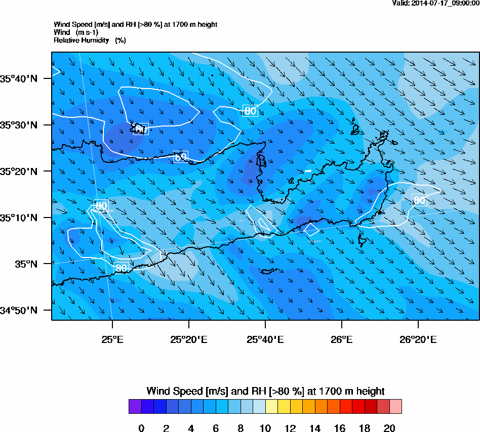 Graph 5: arw035.png - Wind Speed [m/s] and RH [>80%] at 1700 m height