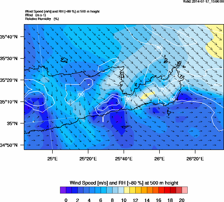 Graph 2: arw062.png - Wind Speed [m/s] and RH [>80%] at 500 m height