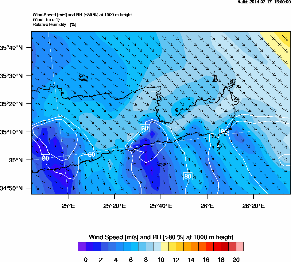 Graph 3: arw063.png - Wind Speed [m/s] and RH [>80%] at 1000 m height