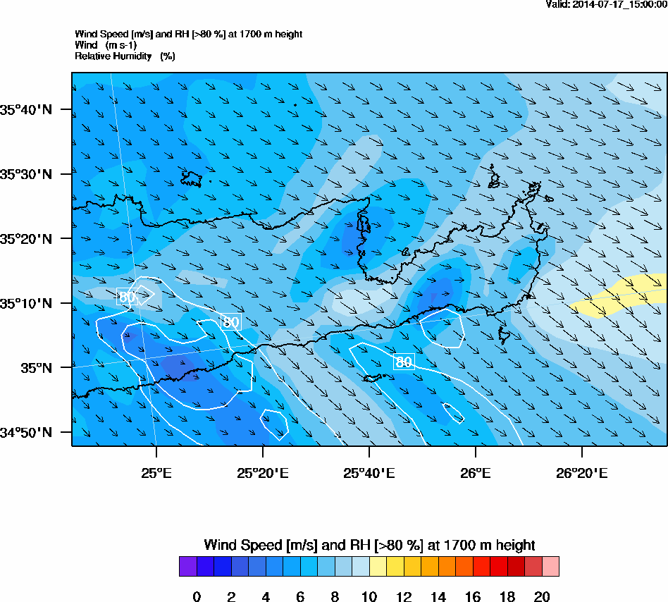 Graph 5: arw065.png - Wind Speed [m/s] and RH [>80%] at 1700 m height