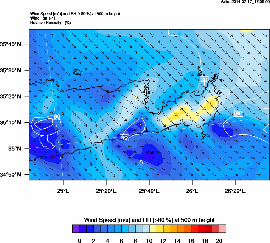 Graph 2: arw072.png - Wind Speed [m/s] and RH [>80%] at 500 m height