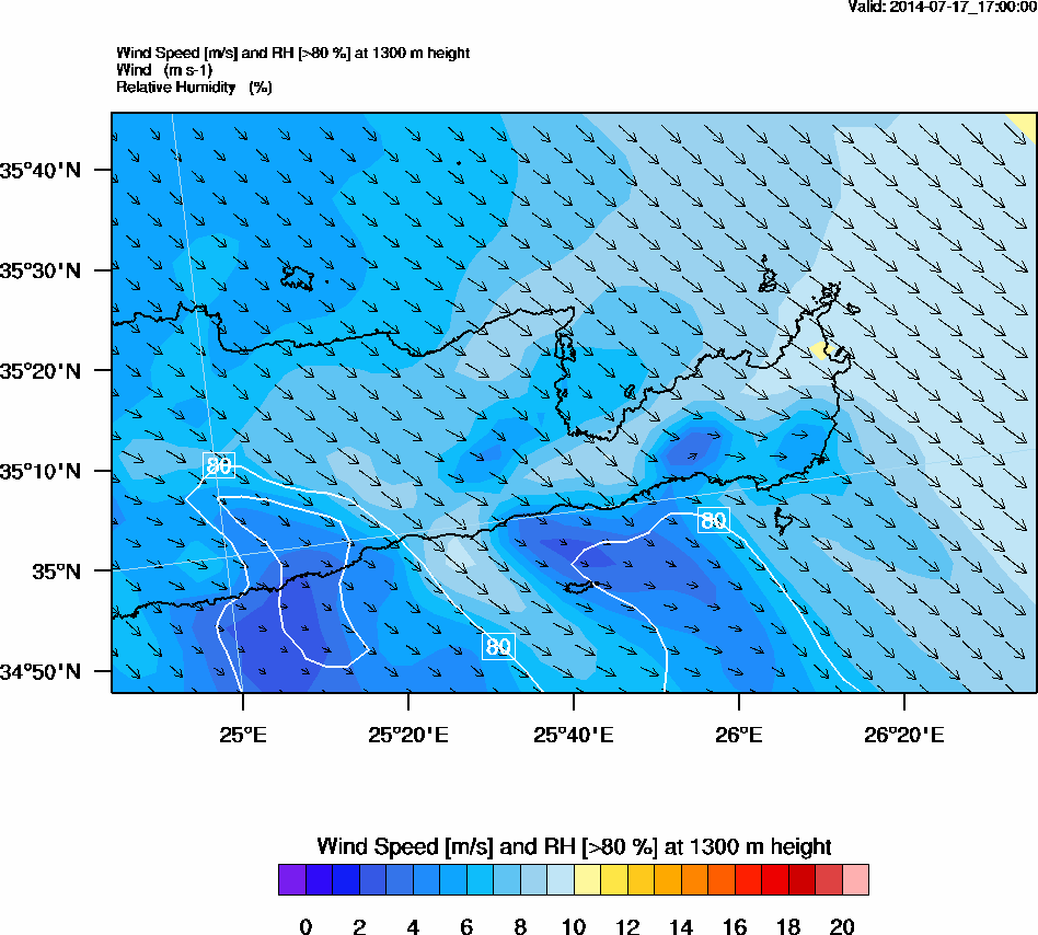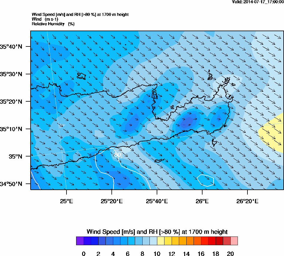 Graph 5: arw075.png - Wind Speed [m/s] and RH [>80%] at 1700 m height