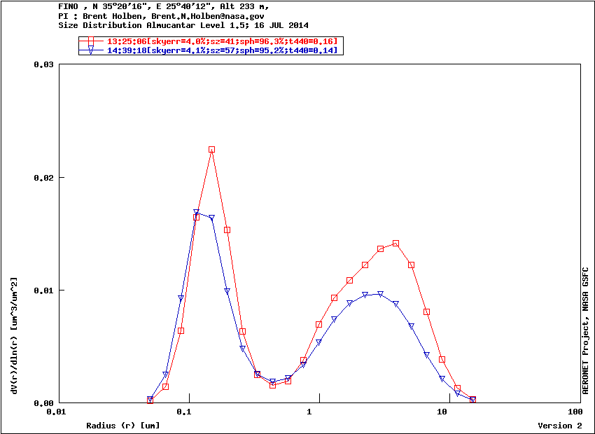 Graph 1: Aerosol volume size distribution -Level 1.5