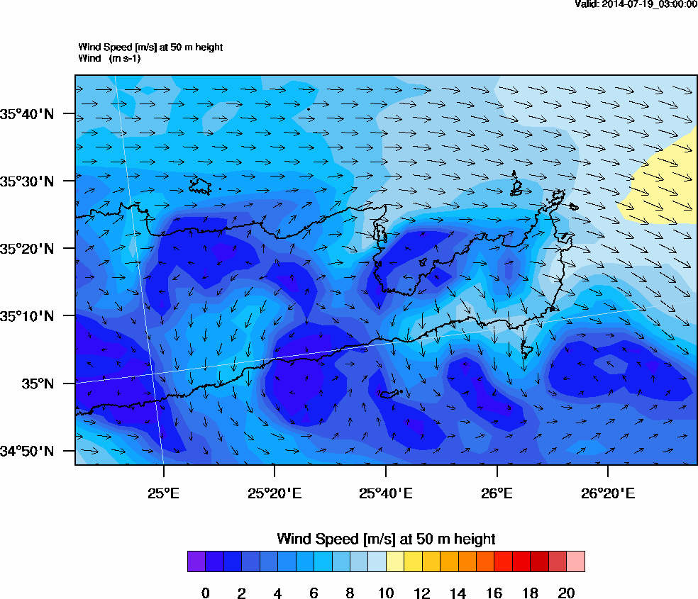 Graph 1: arw001.png - Wind Speed [m/s] at 50 m height