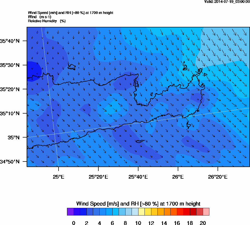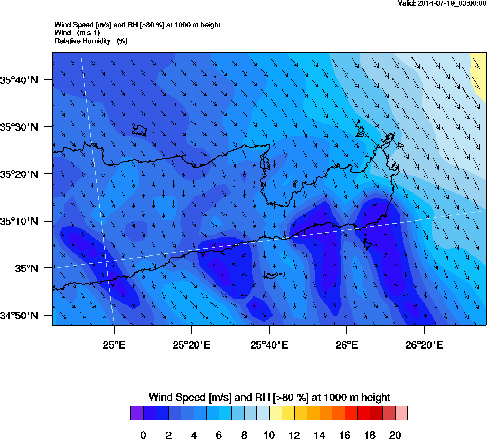 Graph 3: arw003.png - Wind Speed [m/s] and RH [>80%] at 1000 m height