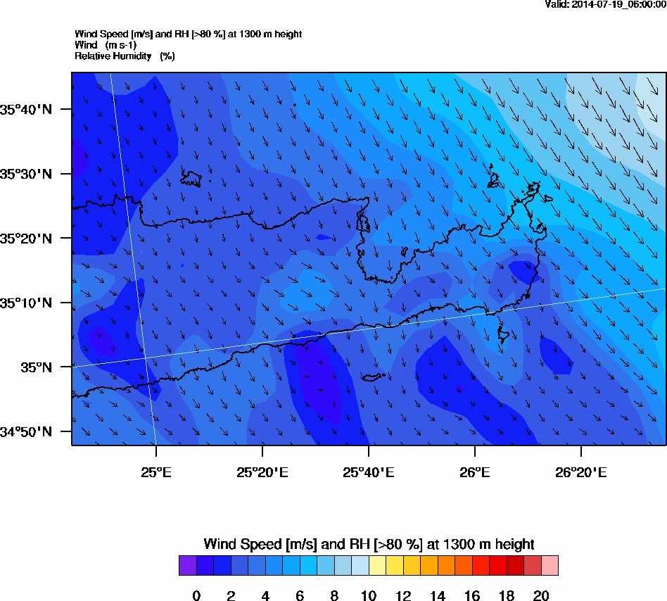 Graph 4: arw019.png - Wind Speed [m/s] and RH [>80%] at 1300 m height