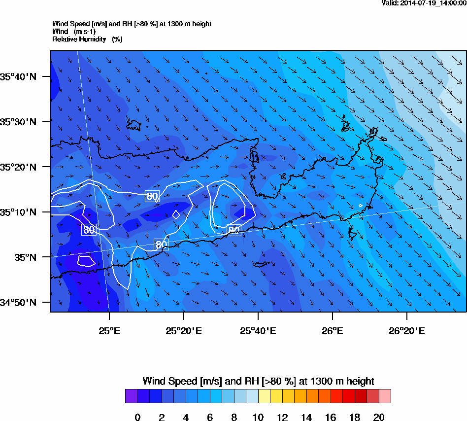 Graph 4: arw059.png - Wind Speed [m/s] and RH [>80%] at 1300 m height