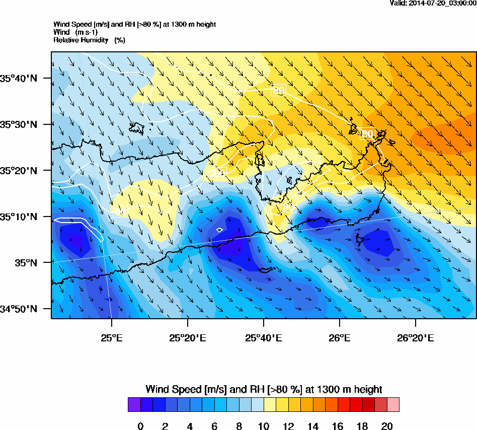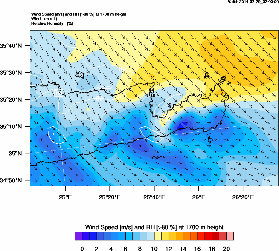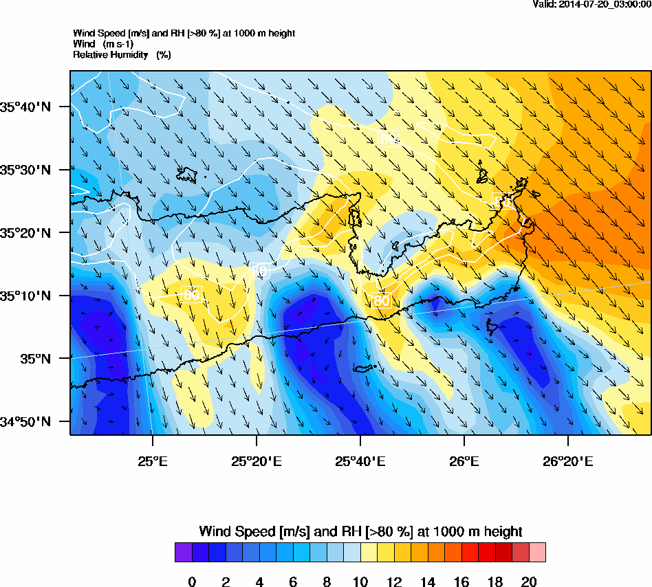 Graph 3: arw003.png - Wind Speed [m/s] and RH [>80%] at 1000 m height