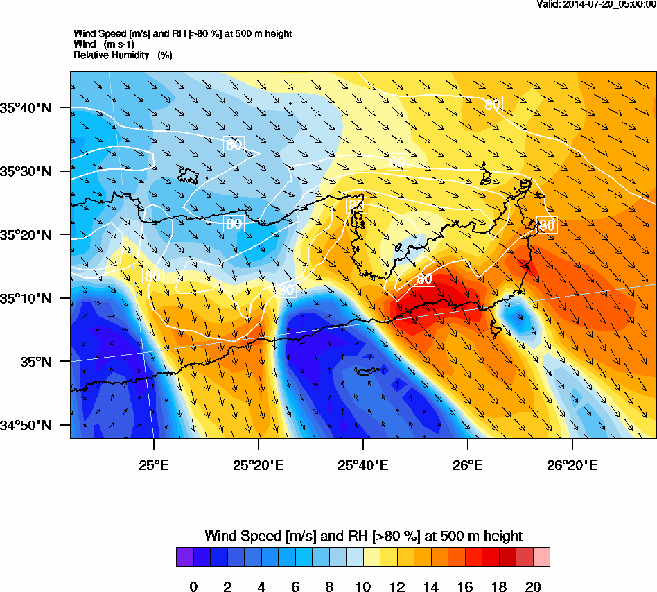 Graph 2: arw012.png - Wind Speed [m/s] and RH [>80%] at 500 m height