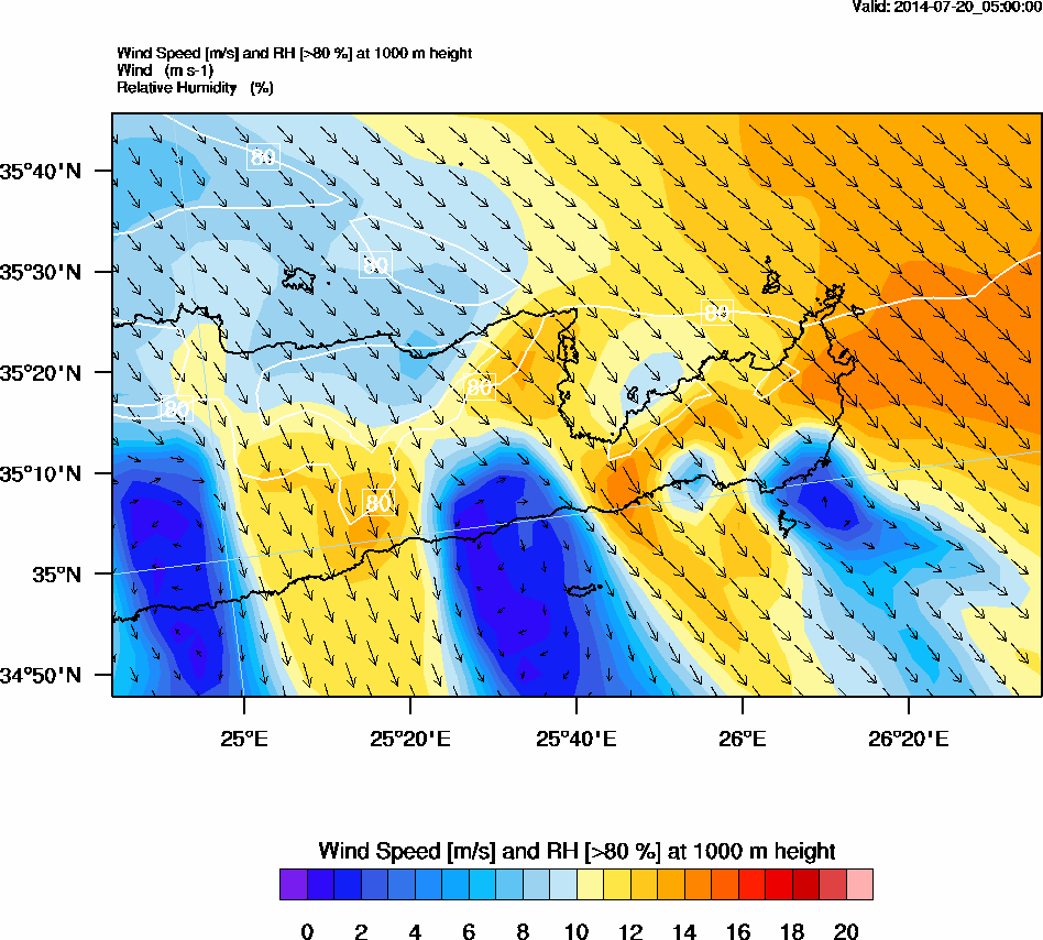 Graph 3: arw013.png - Wind Speed [m/s] and RH [>80%] at 1000 m height