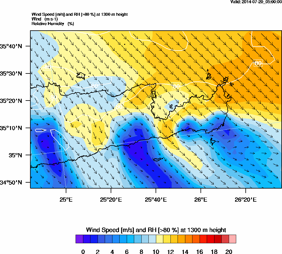 Graph 4: arw014.png - Wind Speed [m/s] and RH [>80%] at 1300 m height
