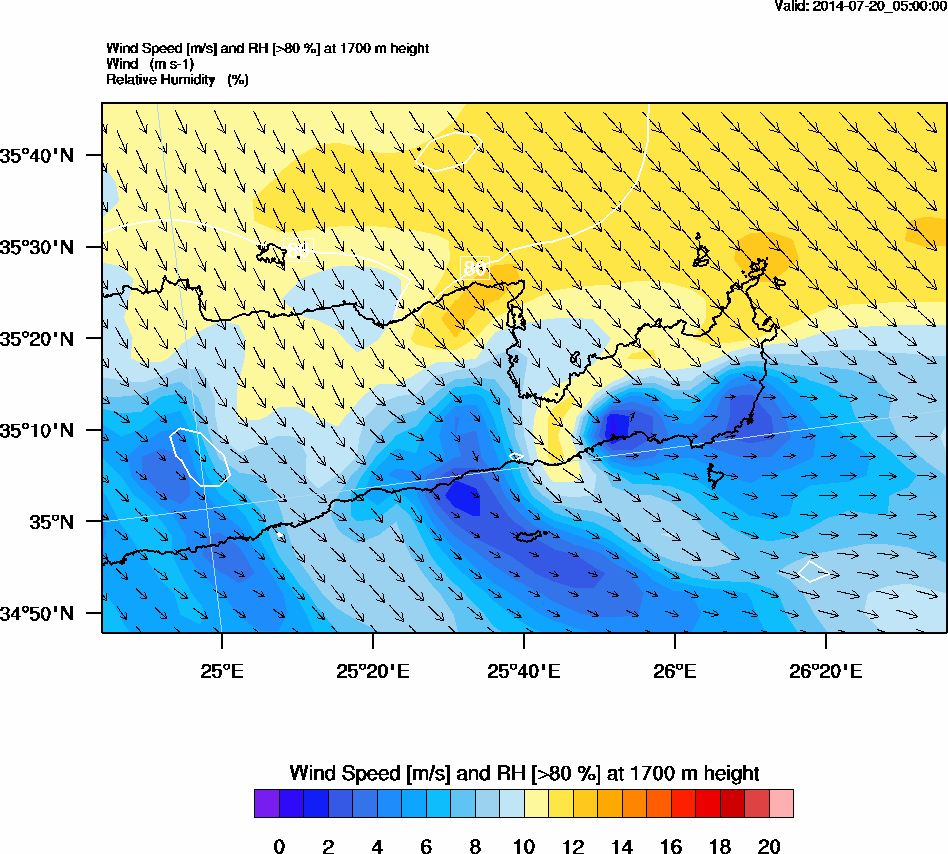 Graph 5: arw015.png - Wind Speed [m/s] and RH [>80%] at 1700 m height