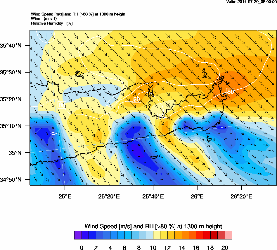 Graph 4: arw019.png - Wind Speed [m/s] and RH [>80%] at 1300 m height