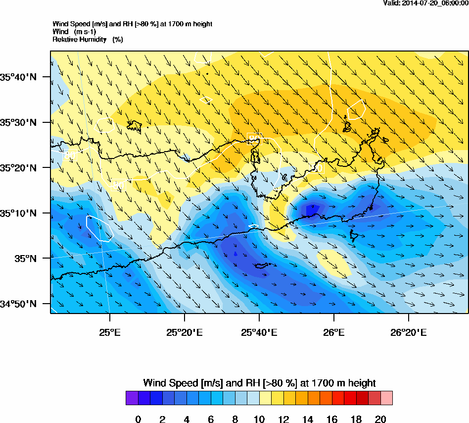 Graph 5: arw020.png - Wind Speed [m/s] and RH [>80%] at 1700 m height