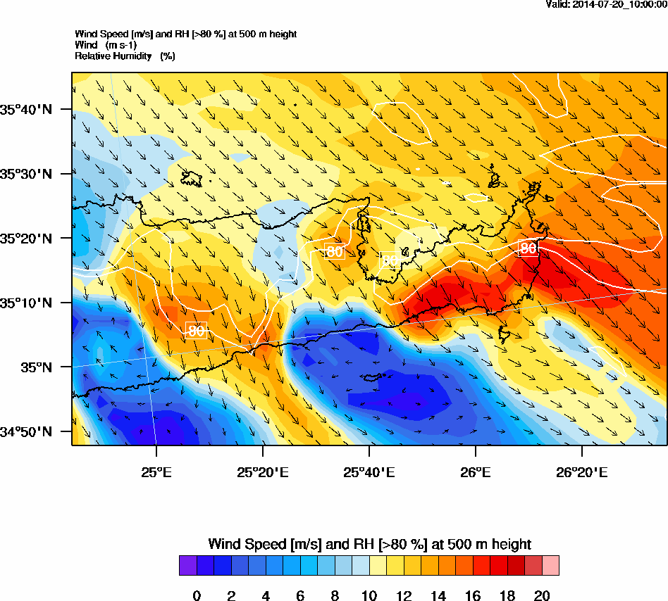 Graph 2: arw037.png - Wind Speed [m/s] and RH [>80%] at 500 m height