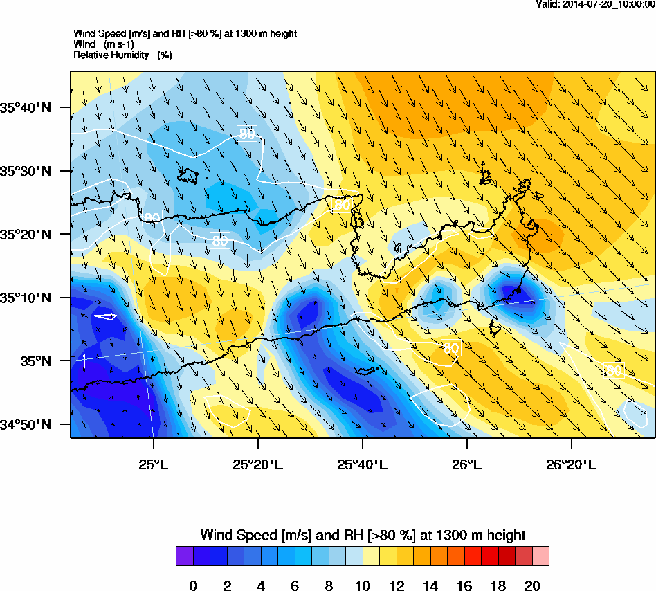 Graph 4: arw039.png - Wind Speed [m/s] and RH [>80%] at 1300 m height