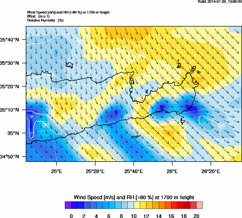 Graph 5: arw040.png - Wind Speed [m/s] and RH [>80%] at 1700 m height