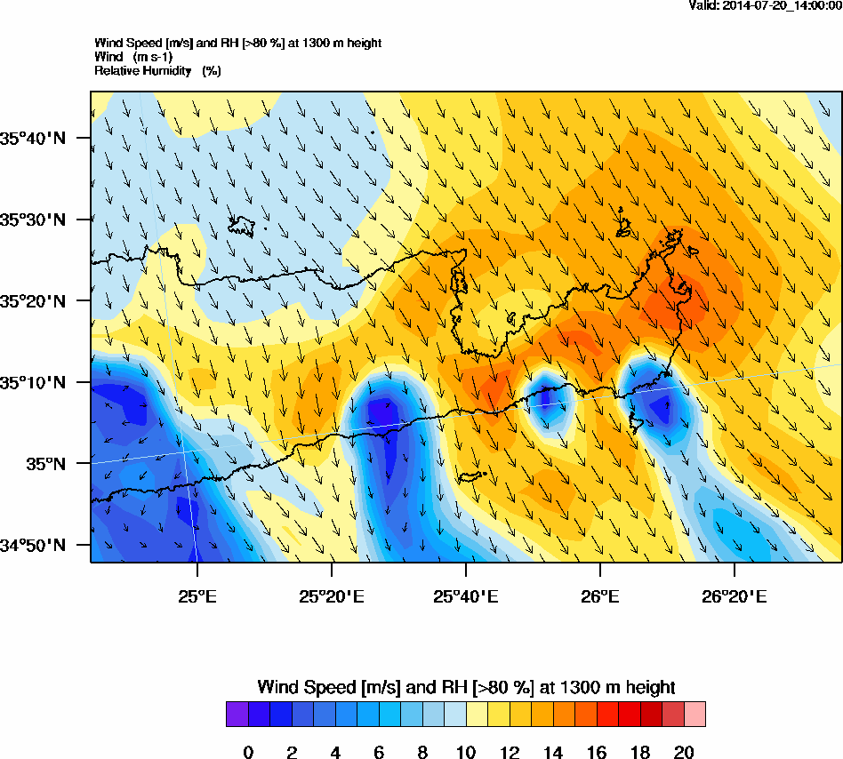Graph 4: arw059.png - Wind Speed [m/s] and RH [>80%] at 1300 m height