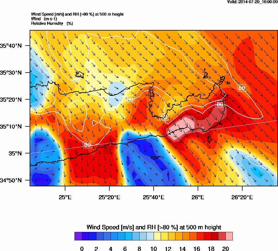 Graph 2: arw067.png - Wind Speed [m/s] and RH [>80%] at 500 m height