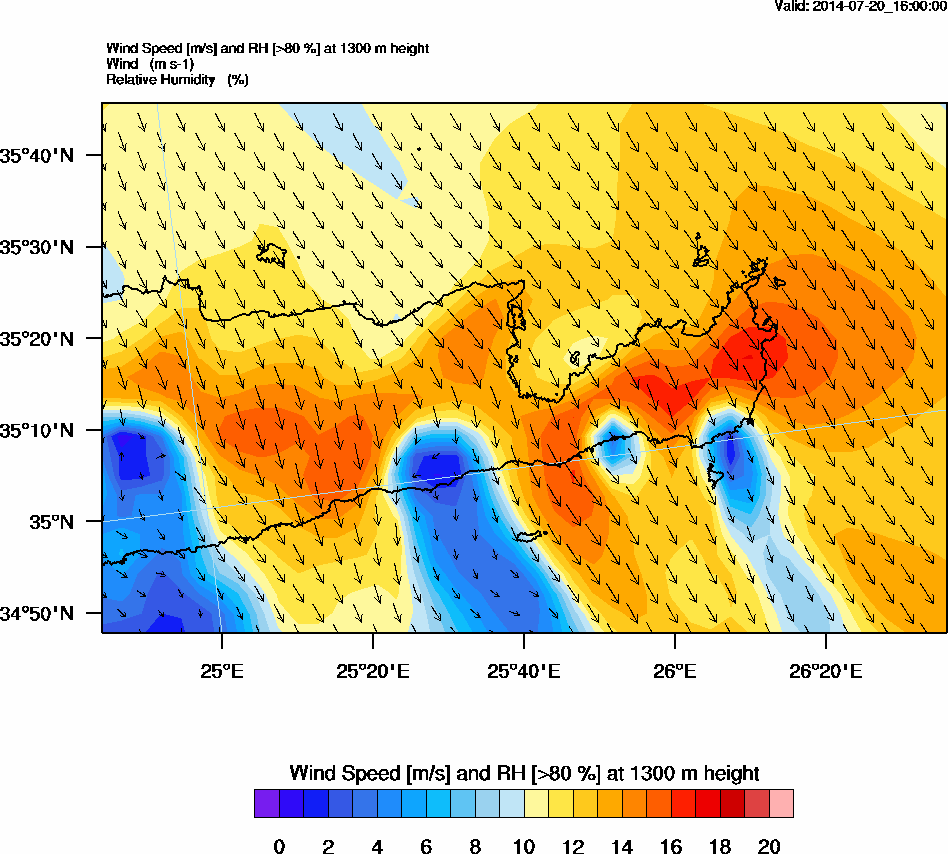 Graph 4: arw069.png - Wind Speed [m/s] and RH [>80%] at 1300 m height