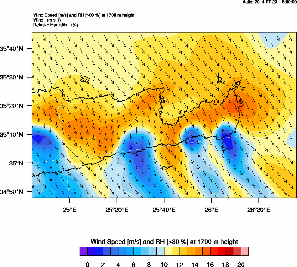 Graph 5: arw070.png - Wind Speed [m/s] and RH [>80%] at 1700 m height