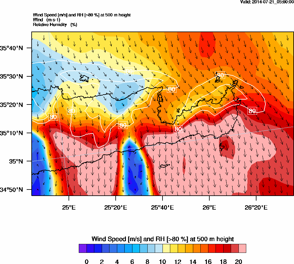 Graph 2: arw012.png - Wind Speed [m/s] and RH [>80%] at 500 m height