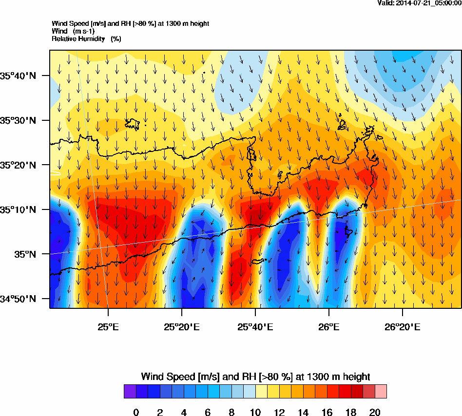 Graph 4: arw014.png - Wind Speed [m/s] and RH [>80%] at 1300 m height
