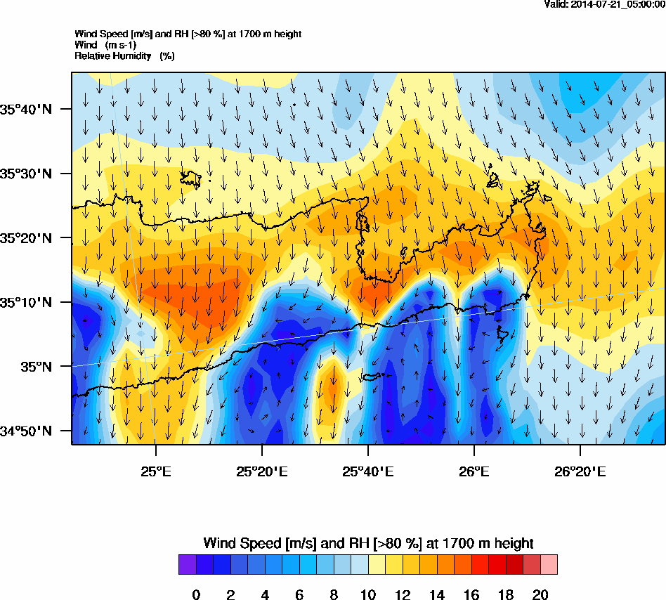 Graph 5: arw015.png - Wind Speed [m/s] and RH [>80%] at 1700 m height