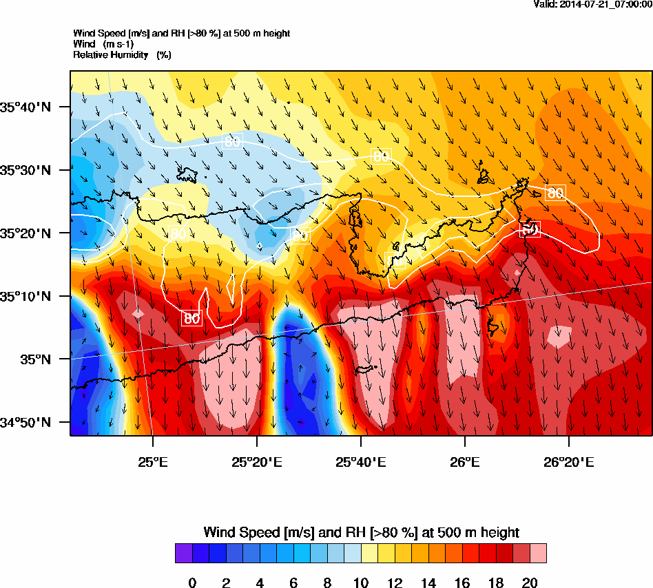 Graph 2: arw022.png - Wind Speed [m/s] and RH [>80%] at 500 m height