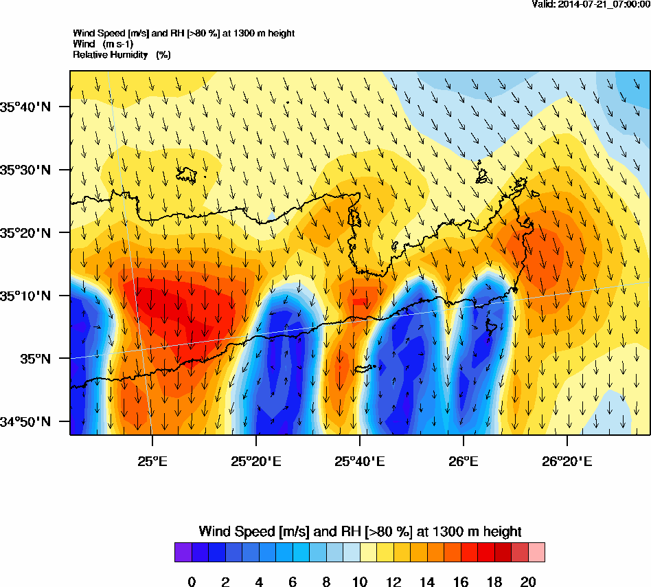 Graph 4: arw024.png - Wind Speed [m/s] and RH [>80%] at 1300 m height