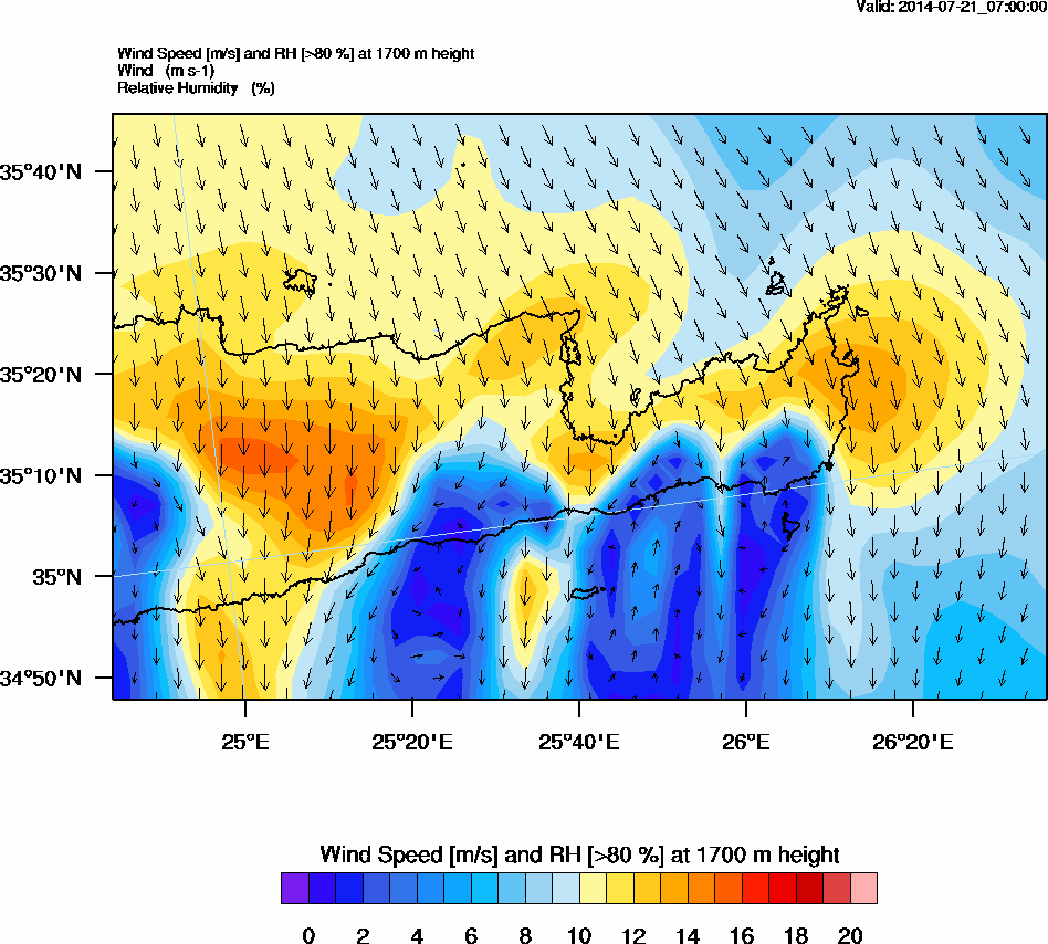 Graph 5: arw025.png - Wind Speed [m/s] and RH [>80%] at 1700 m height