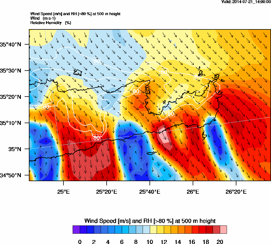 Graph 2: arw057.png - Wind Speed [m/s] and RH [>80%] at 500 m height