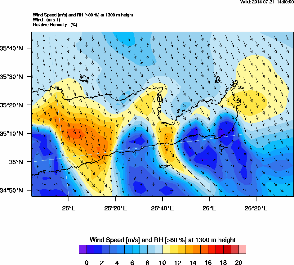 Graph 4: arw059.png - Wind Speed [m/s] and RH [>80%] at 1300 m height