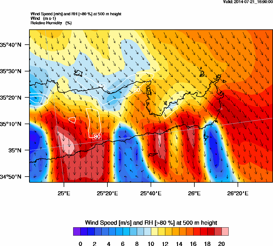 Graph 2: arw067.png - Wind Speed [m/s] and RH [>80%] at 500 m height